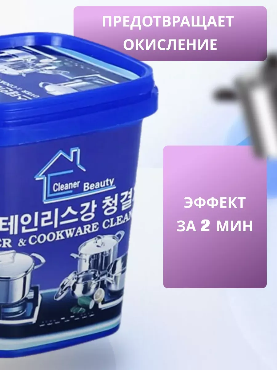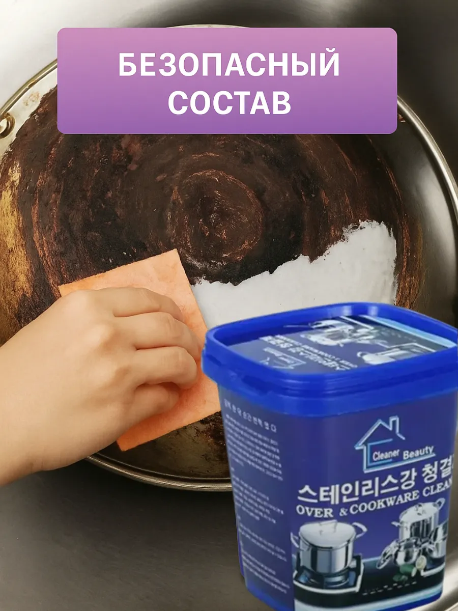 Одна паста для всего: идеально очищает кастрюли, сковородки, раковины, ванны, плиты, хром и нержавейку. Заменит целый арсенал бытовой химии.